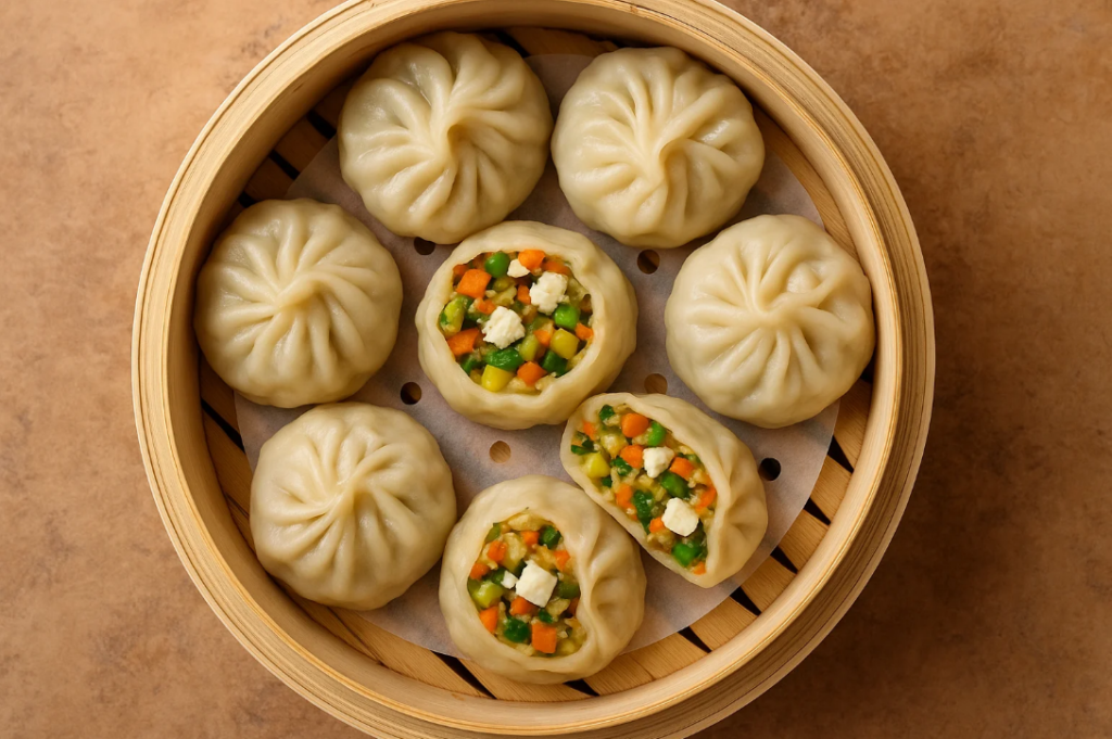 Aromatic South Indian style momos with mixed vegetables and signature Chettinadu spices