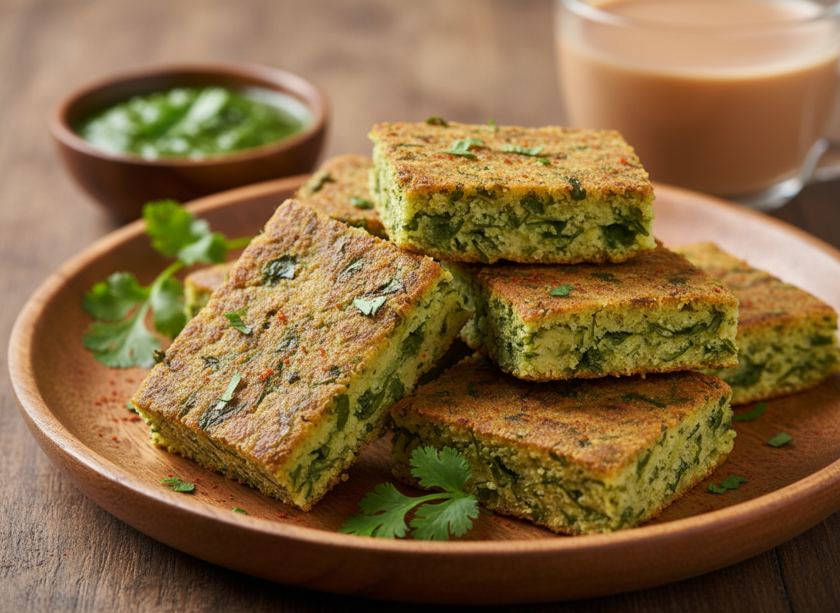 Traditional savory snack made with gram flour and coriander, lightly spiced and flavorful.