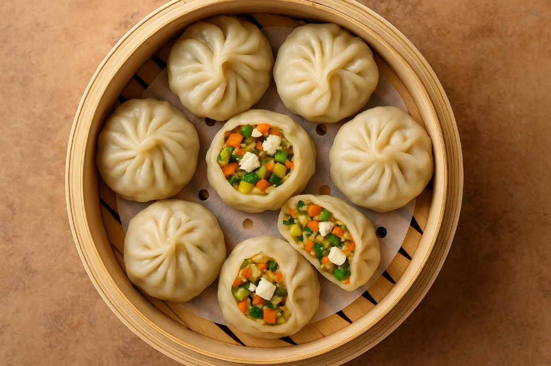 A flavorful mix of assorted vegetables blended with mild spices, wrapped in soft dumpling sheets