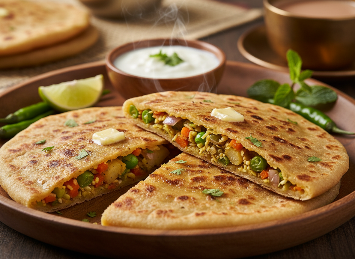 Nutritious flatbread stuffed with a blend of mixed vegetables and light spices for a balanced taste