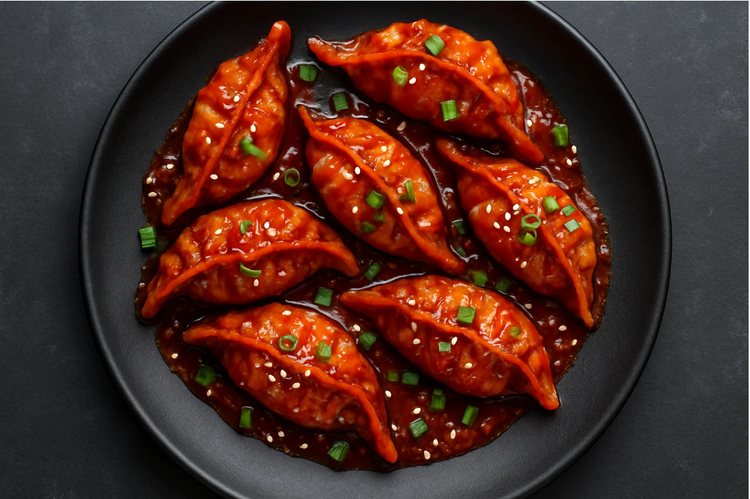 Spicy vegetable momos infused with bold Schezwan flavors for a fiery, tangy kick.